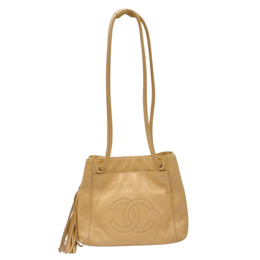 CHANEL シャネル ショルダーバッグ ココマーク べっ甲 フリンジ レザー ベージュ 5番台