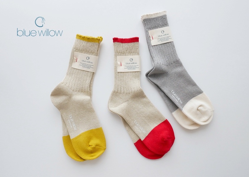 【blue willow(ブルーウィロー)*コットンリネン配色ソックス(3色)】