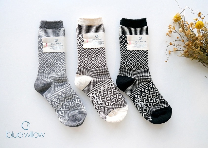 【blue willow(ブルーウィロー)*コットン北欧柄編みソックス(3色)】