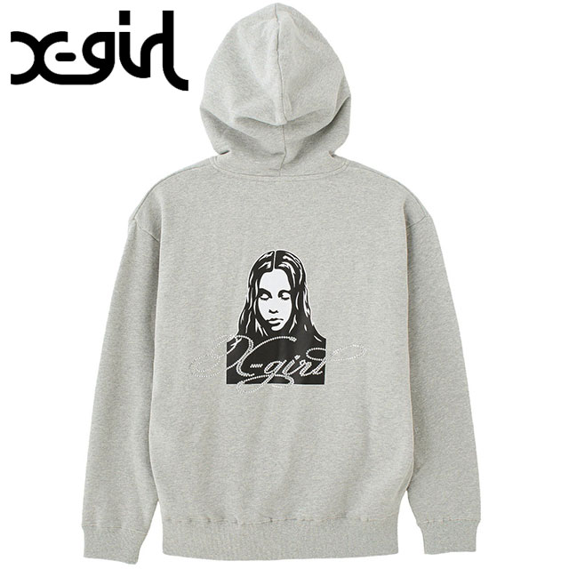 エックスガール X-girl レディース ラインストーンロゴアンドフェイス ジップアップスウェットフーディー [105261012...