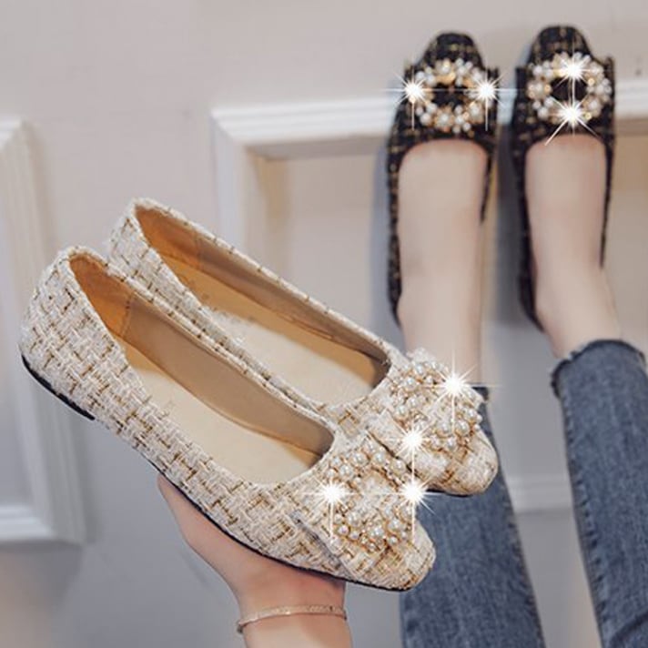 ビジュープレート ツイード フラット パンプス[BSOT004-1]