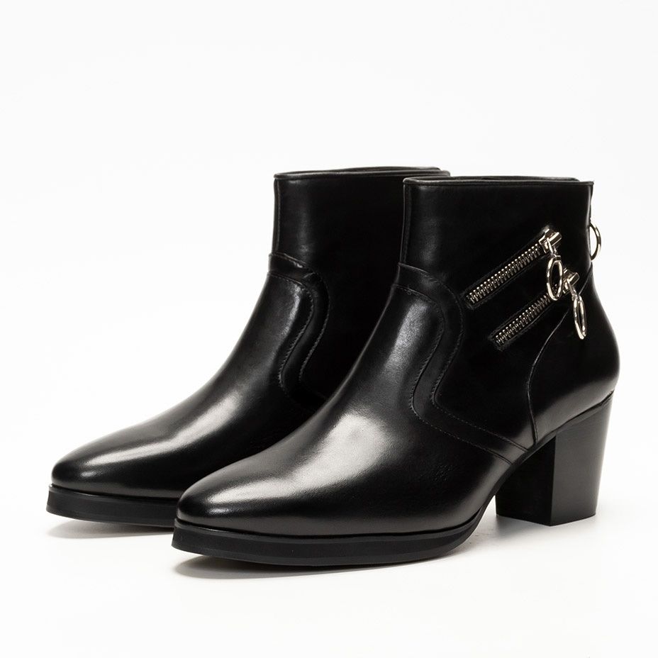 レザー プラットフォーム ハイヒールブーツ / 2連ジップ ショートブーツ [ ELB031-10 ] endevice / エン...