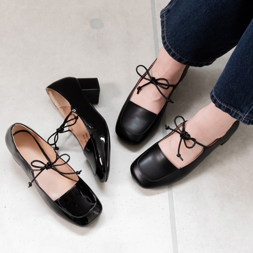 スクエアヒール リボンパンプス / バレエシューズ [ IPT129-1 ] SVEC / シュベック