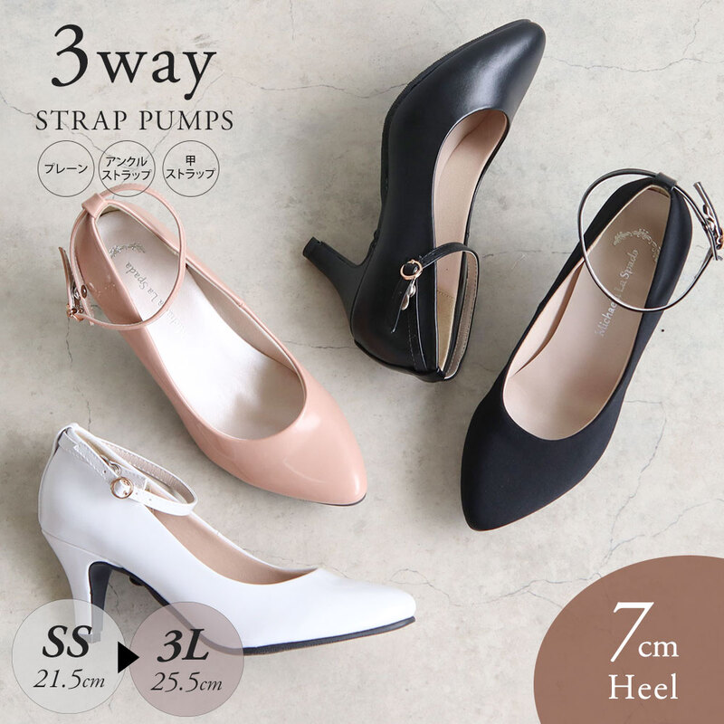 パンプス ストラップ 取り付け 3way 歩きやすい 走れる レディース 結婚式 美脚 ブラック 黒 白 ホワイト ピンク 160...