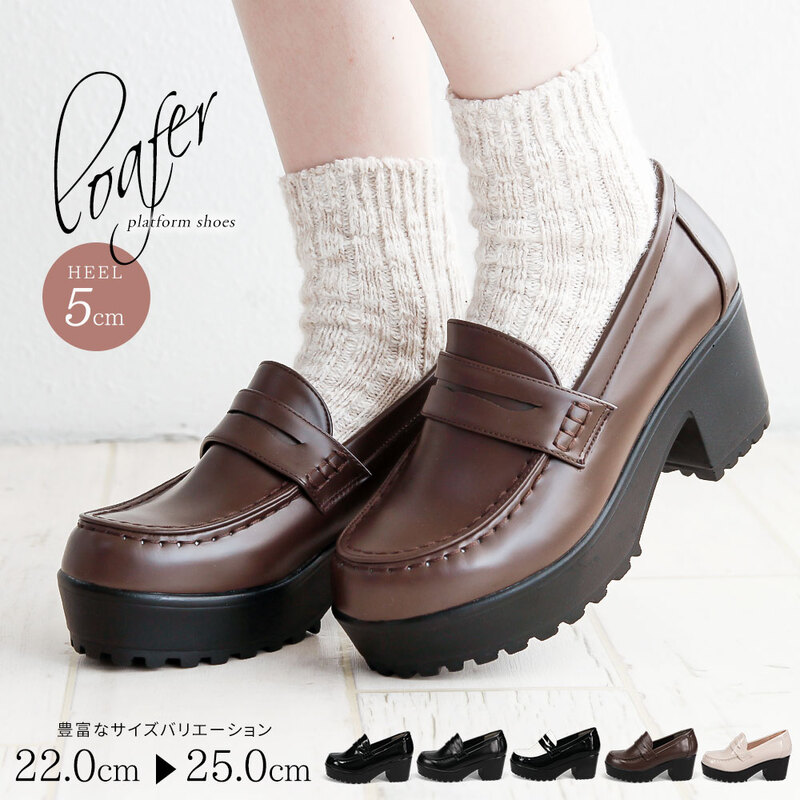 ビットローファー レディース 厚底 5cmヒール 美脚 歩きやすい 痛くない 通勤 通学 カジュアル 黒 白 ブラウン 1339