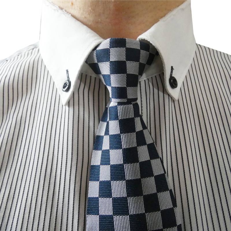 ネクタイ フック式 カンタンネクタイ メンズ ビジネス おしゃれ ギフト 人気 ブロックチェック シルバーグレー×ネイビー 501...