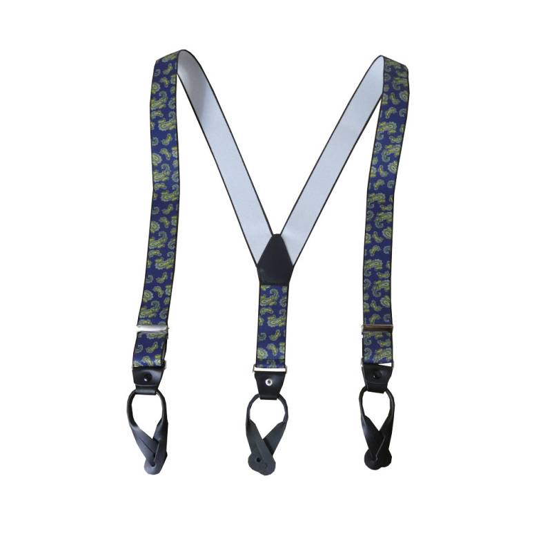 サスペンダー メンズ Y型サスペンダー 35mm 本革 七々子 カシメボタン式 ゲバルト ブライトペイズリー S02 Mサイズ