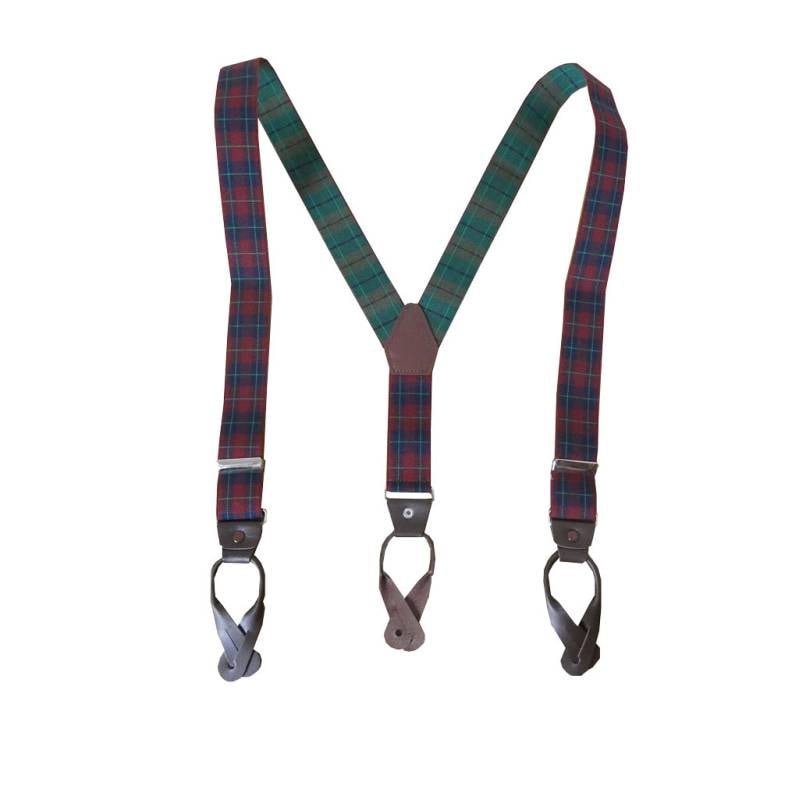 サスペンダー メンズ Y型サスペンダー 35mm 本革 七々子 カシメボタン式 ゲバルト タータンチェック 赤×緑 S11 M...