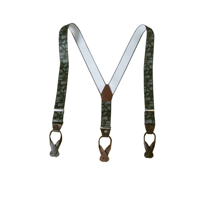 サスペンダー メンズ Y型サスペンダー 35mm 本革 七々子 カシメボタン式 ゲバルト ペイズリー グリーン S23 M...