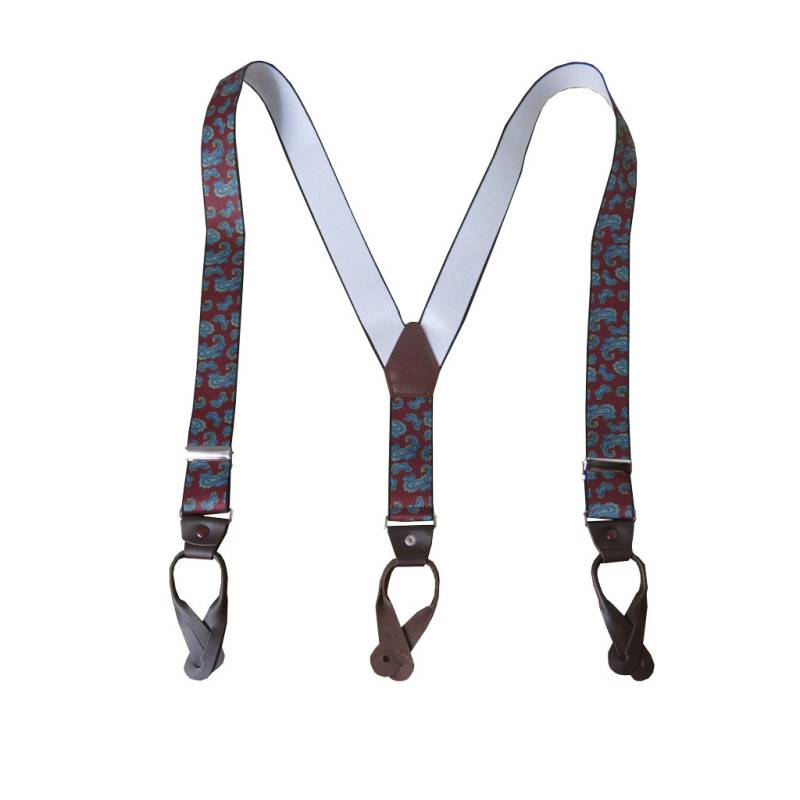 サスペンダー メンズ Y型サスペンダー 35mm 本革 七々子 カシメボタン式 ゲバルト ペイズリー ワインレッド S24 ...