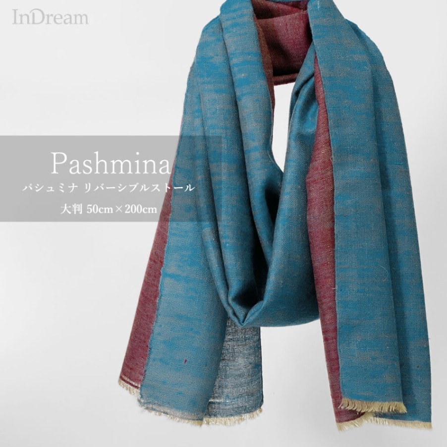 InDream 手織りパシュミナストールリバーシブル マフラ― カシミヤ100% ブルー 赤 50cm幅 父の日プレゼント ギフト...