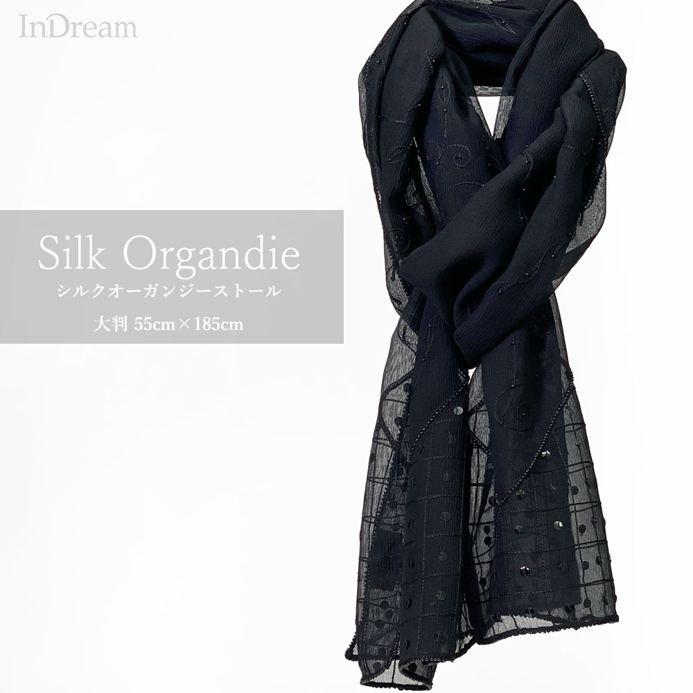 InDream シルクオーガンジーストール 黒 ブラック 結婚式 パーティー フォーマル クリスマス ギフト おしゃれ 誕生日 プ...