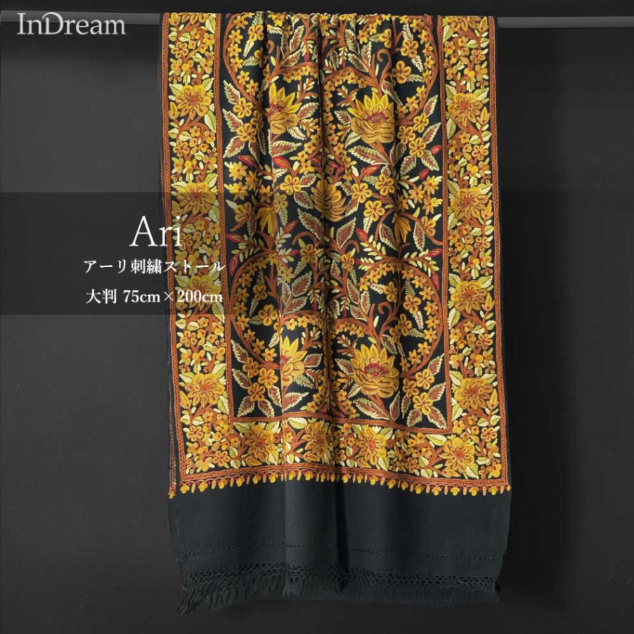 [50%OFF] InDream アーリ刺繍ストール 黒 大判 クリスマス ギフト おしゃれ 誕生日 プレゼント 着物ショール レ...