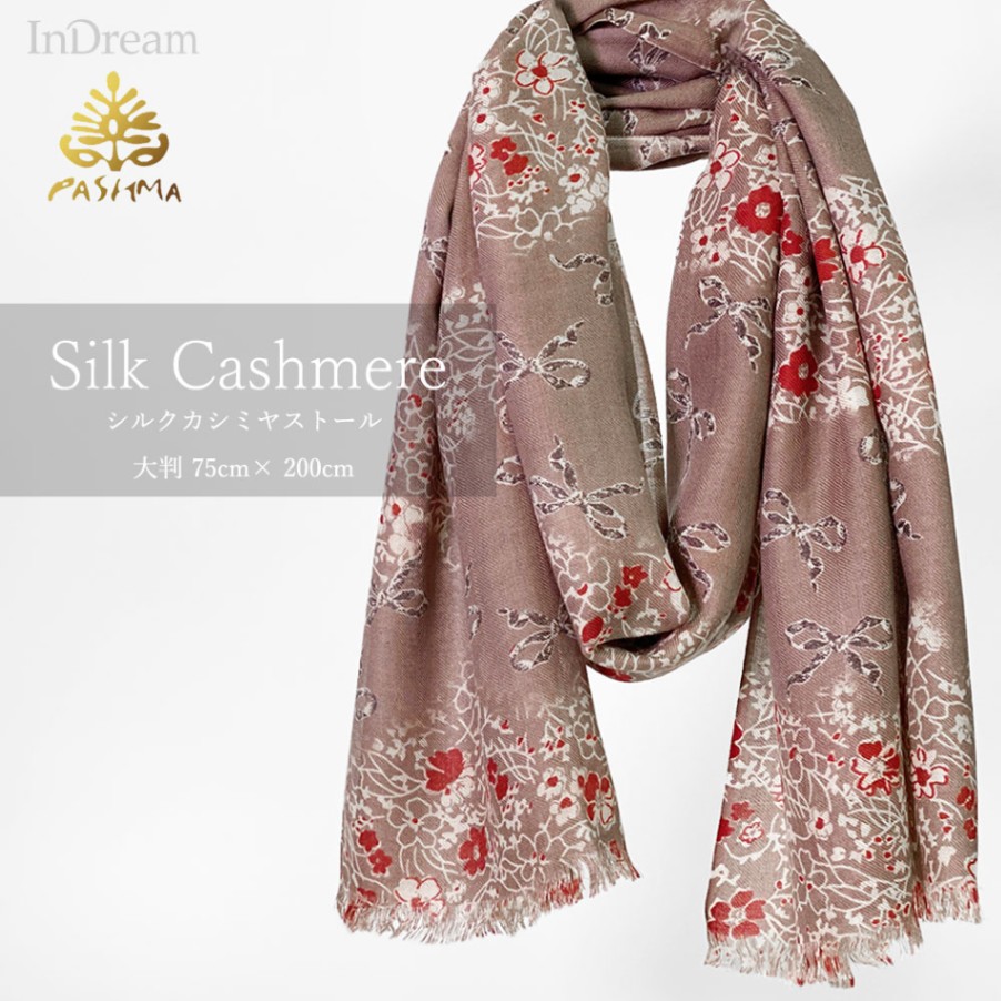 PASHMA パシュマ ストール プ リント シルクカシミヤ ベージュ 春夏 クリスマス ギフト おしゃれ 誕生日 プレゼント 5...