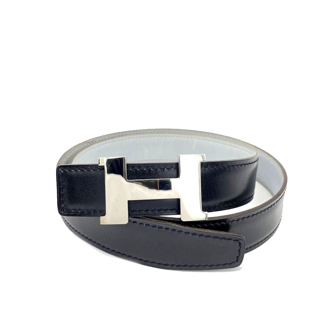 HERMES エルメス Hベルト ミニコンスタンス 70 ボックスカーフ ブラック グレー シルバー金具 □E刻印