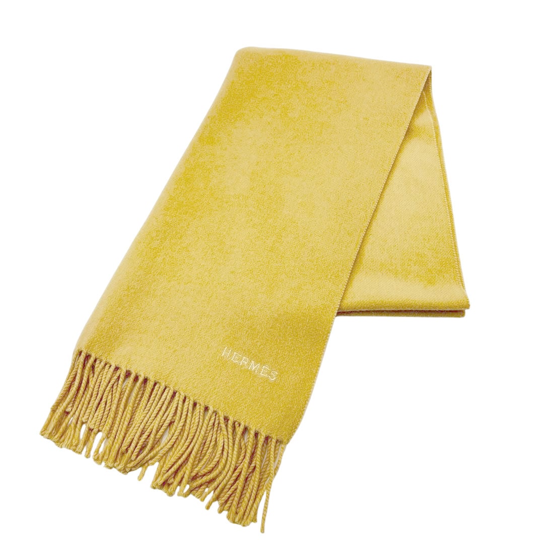 HERMES エルメス ヴィンテージマフラー カシミヤ100% イエロー系 イギリス製