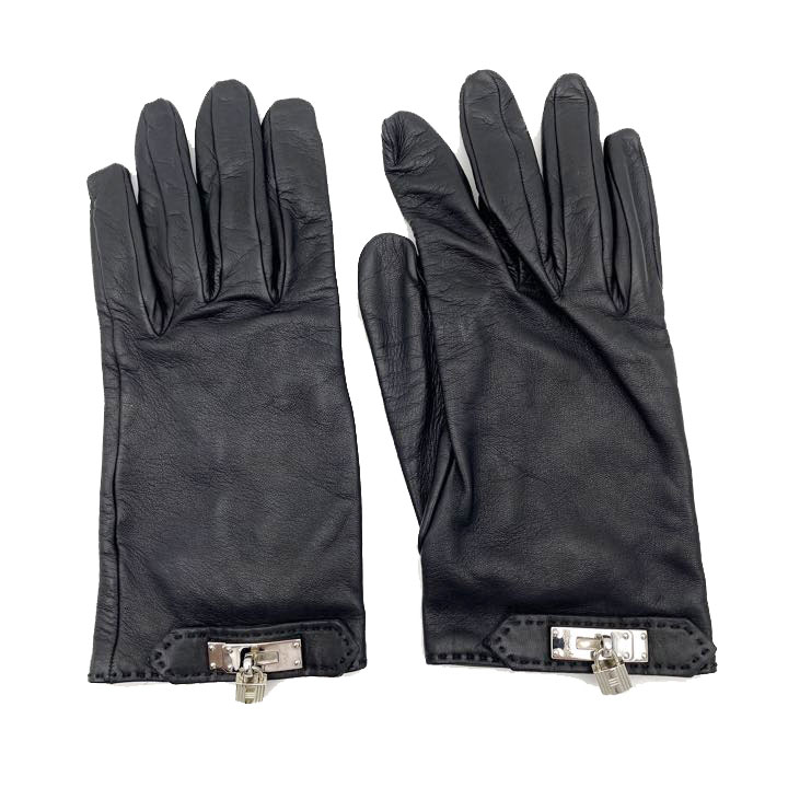 HERMES エルメス グローブ 手袋 ソヤ ラムレザー ケリー カデナチャーム ブラック シルバー金具 8