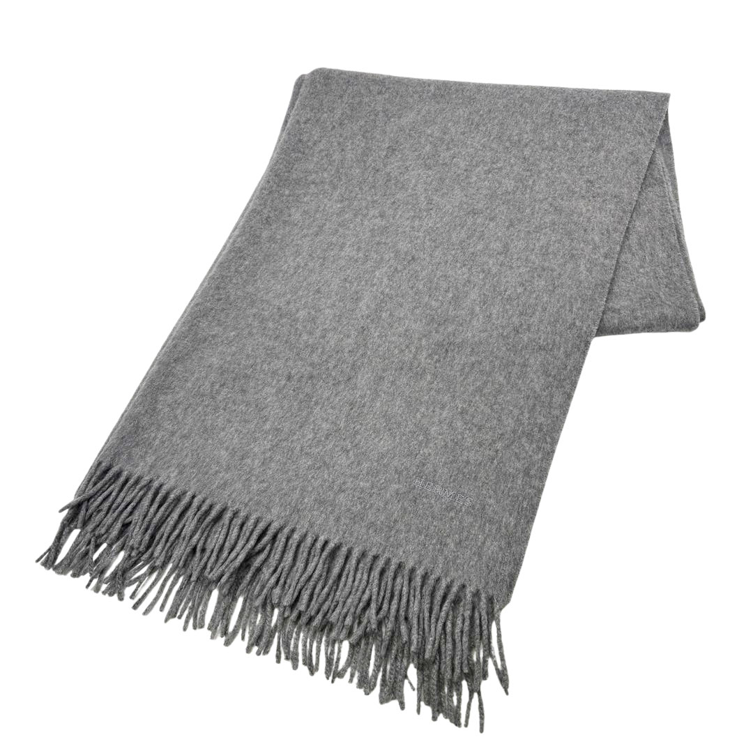 HERMES エルメス ショール ストール マフラー ロゴ刺繍 無地 カシミヤ100% グレー スコットランド製