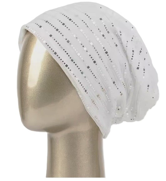 【抗がん剤治療】【医療用帽子】【ケア帽子】 メタリックシークインキャップ:ホワイト