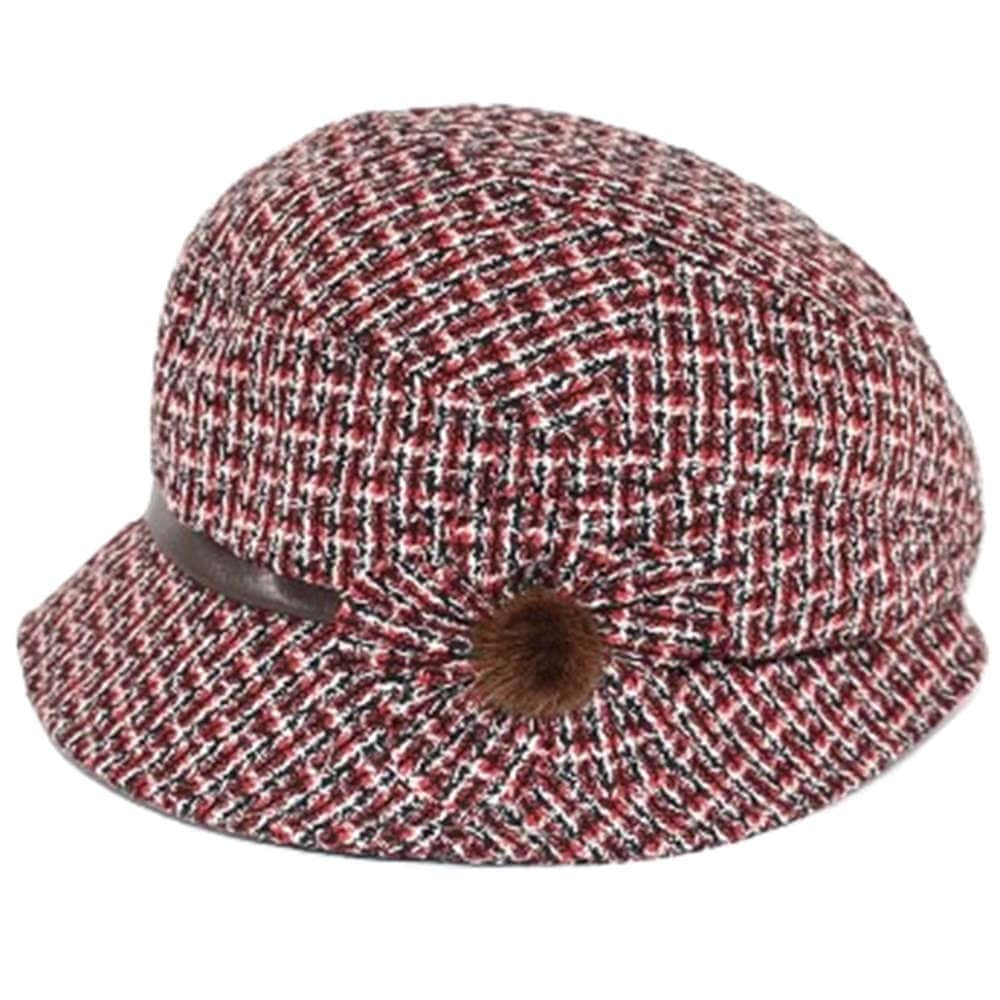 【外出用】【医療用帽子】 キルトツイードハット:レッド