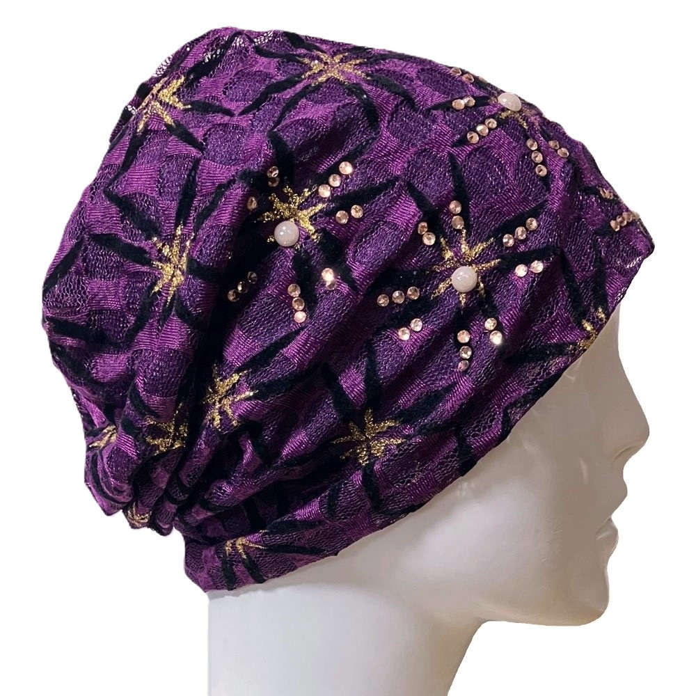 【抗がん剤治療】【医療用帽子】【ケア帽子】 パープルジェム レースルースキャップ