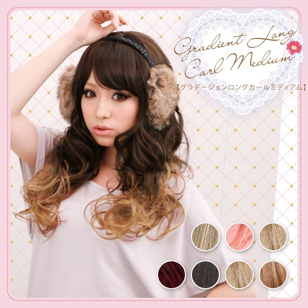 フルウィッグ グラデーションロングカールミディアム 7色バリエーション 耐熱ファイバー 専用ウィッグネット付き【Angelique...