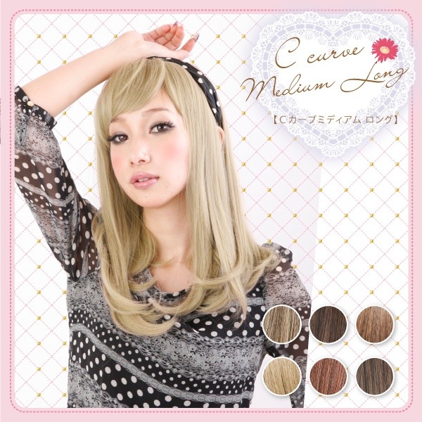 フルウィッグ Cカーブミディアムロング 6色バリエーション 耐熱ファイバー 専用ウィッグネット付き【Angeliqueアンジェリー...