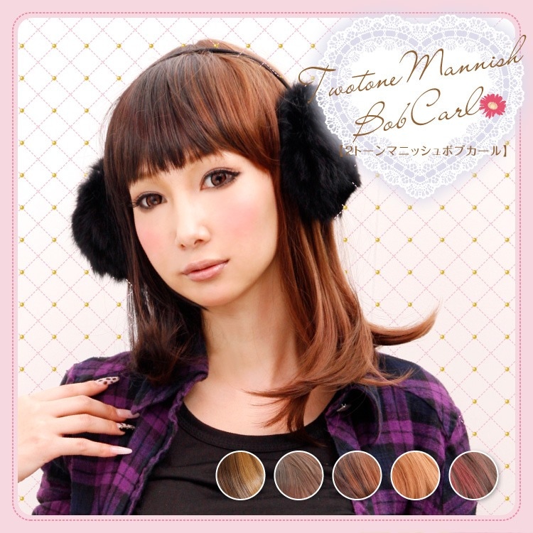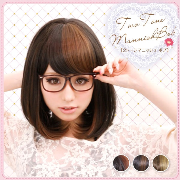 フルウィッグ 2トーンマニッシュボブ 3色バリエーション 耐熱ファイバー 専用ウィッグネット付き【Angeliqueアンジェリーク...