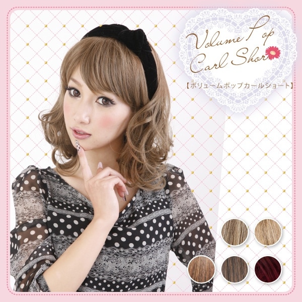 フルウィッグ ボリュームポップカールショート 5色バリエーション 耐熱ファイバー 専用ウィッグネット付き【Angeliqueアンジ...