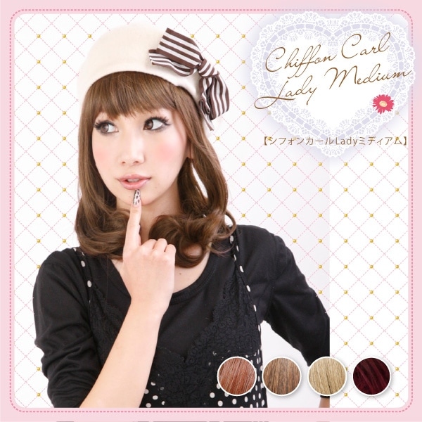 フルウィッグ シフォンカールLadyミディアム 4色バリエーション 耐熱ファイバー 専用ウィッグネット付き【Angeliqueアン...