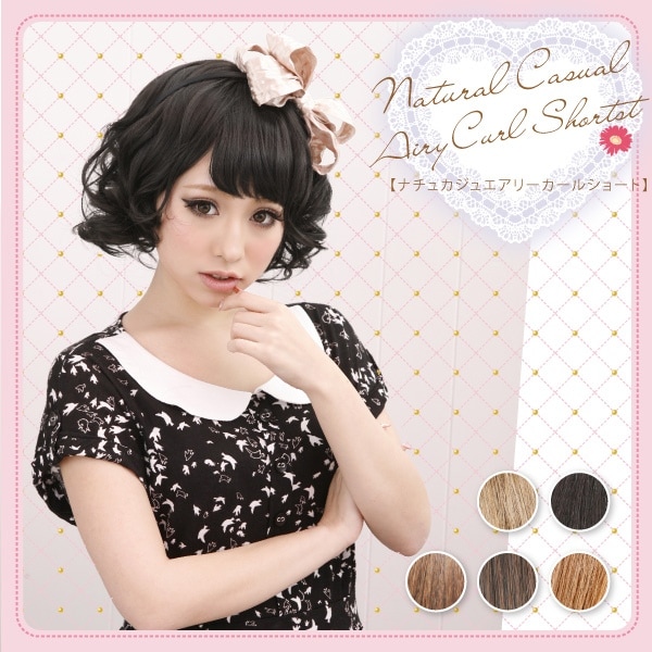 フルウィッグ ナチュカジュエアリーカールショート 5色バリエーション 耐熱ファイバー 専用ウィッグネット付き【Angeliqueア...