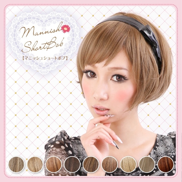 フルウィッグ マニッシュショートボブ 8色バリエーション 耐熱ファイバー 専用ウィッグネット付き【Angeliqueアンジェリーク...