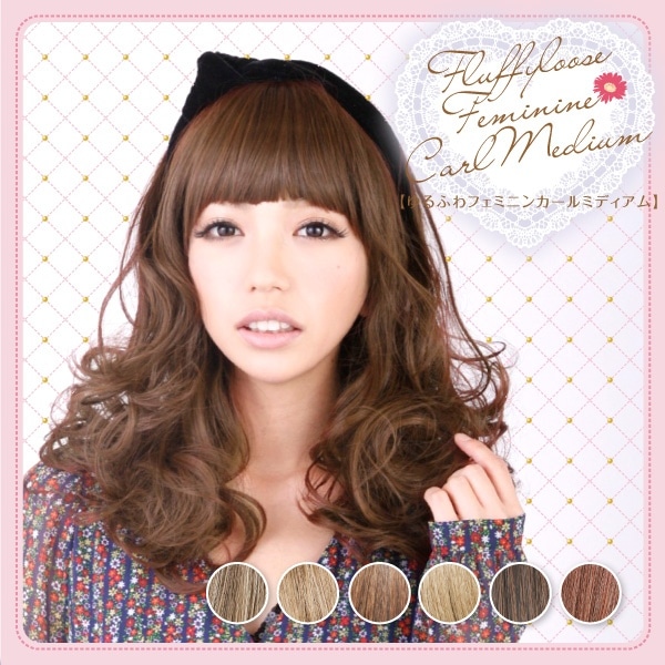フルウィッグ ゆるふわフェミニンカールミディアム 6色バリエーション 耐熱ファイバー 専用ウィッグネット付き【Angeliqueア...