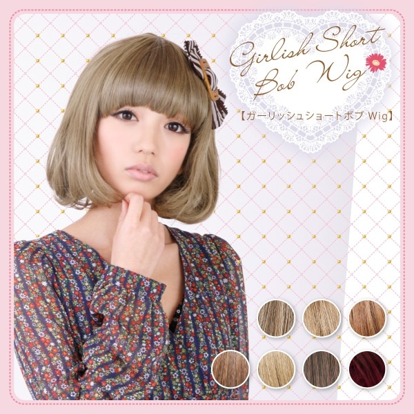 フルウィッグ ガーリッシュショートボブウィッグ 7色バリエーション 耐熱ファイバー 専用ウィッグネット付き【Angeliqueアン...