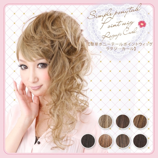 ポイントウィッグ 簡単ポニーテール・ラグジーカール 7色バリエーション 耐熱ファイバー 【Angeliqueアンジェリーク】