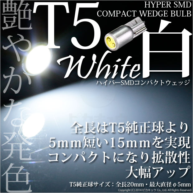 【即納】【メール便可】T5 3chip HYPER SMDコンパクトLED ウェッジシングル LEDカラー:ホワイト 1セット1個...