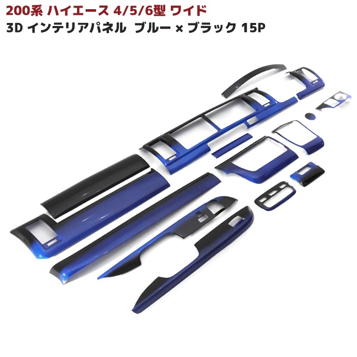200系ハイエース 4型 5型 6型 S-GL ワイド ブルー ブラック インテリア パネル 15P セット 新品 パネル インパ...