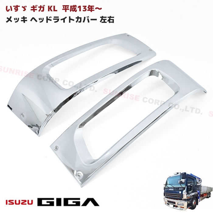 いすゞ ギガ KL メッキ ヘッドライト カバー ガーニッシュ ベゼル 左右 平成13年~ ヘッド 枠 フレーム
