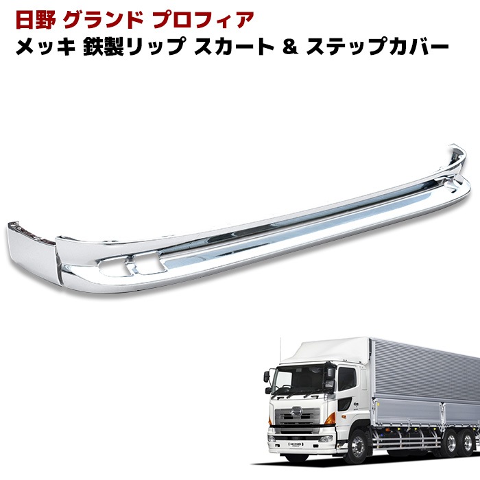日野 NEWプロフィア グランドプロフィア 鉄製 メッキ フロント リップ スポイラー & 専用 ステップ スカート