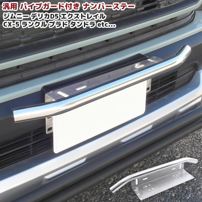 汎用 メッキ ナンバー プレート ガード パイプ バンパー ステンレス製 ジムニー ランクル サーフ プラド フォグステー付 ブッ...