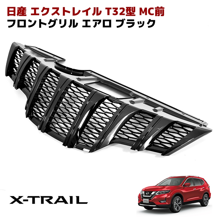 日産 エクストレイル T32 フロント グリル ブラック マーク着脱式 フロント カメラ対応 マーク台座付き