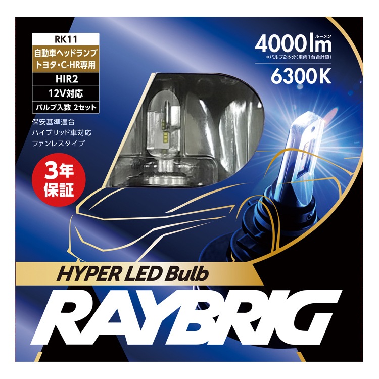 [RK11] LEDヘッドランプ HIR2 6300K 4000lm 12V 22W RAYBRIG レイブリック 車検対応 3年...