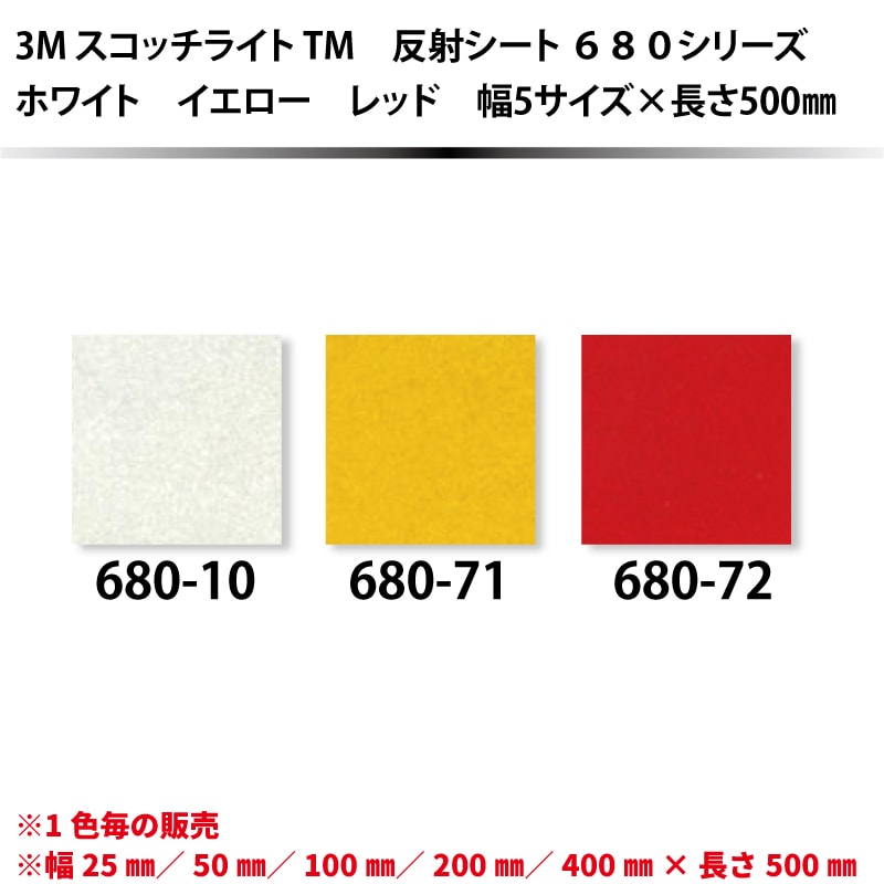 スコッチライト反射シート 680シリーズ ホワイト・イエロー・レッド 幅5サイズ×長さ500mm