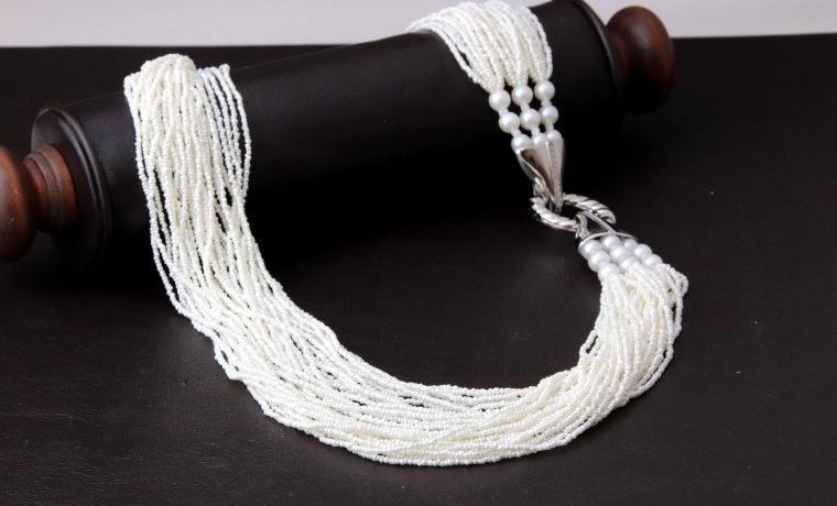 ホワイトハート アンティークビーズネックレス トライバル NGN-08