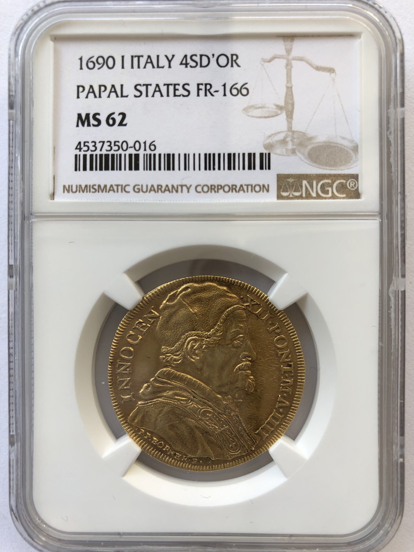 【レア度4-R4】ヴァチカン (イタリア ローマ教皇領) 4スクーディ金貨 1694年 インノケンティウス12世NGC-MS62