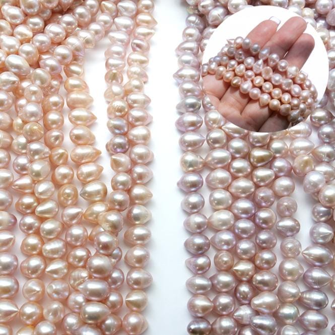 【266. 淡水パール ドロップ クレオ ビーズ 連 】 ピンク 11mm - 6mm 長さ35cm 淡水真珠 国内発送