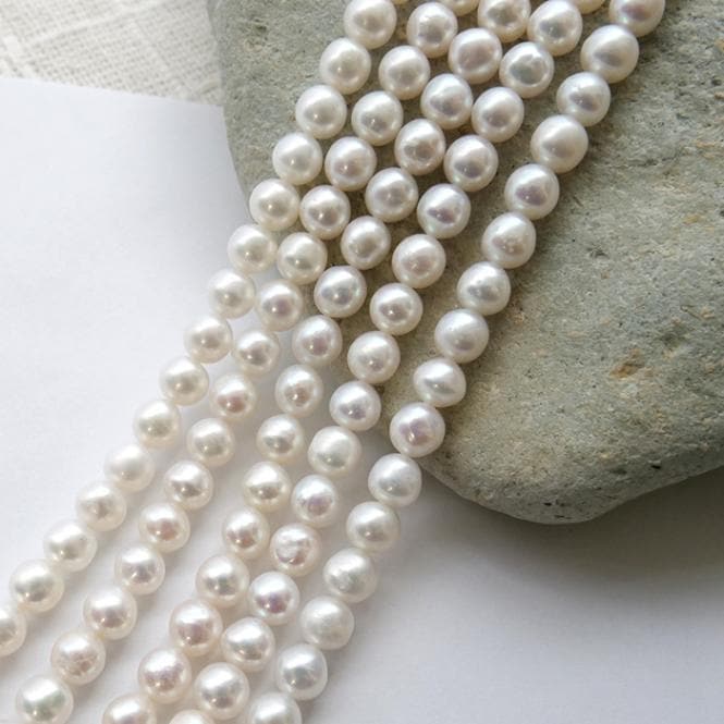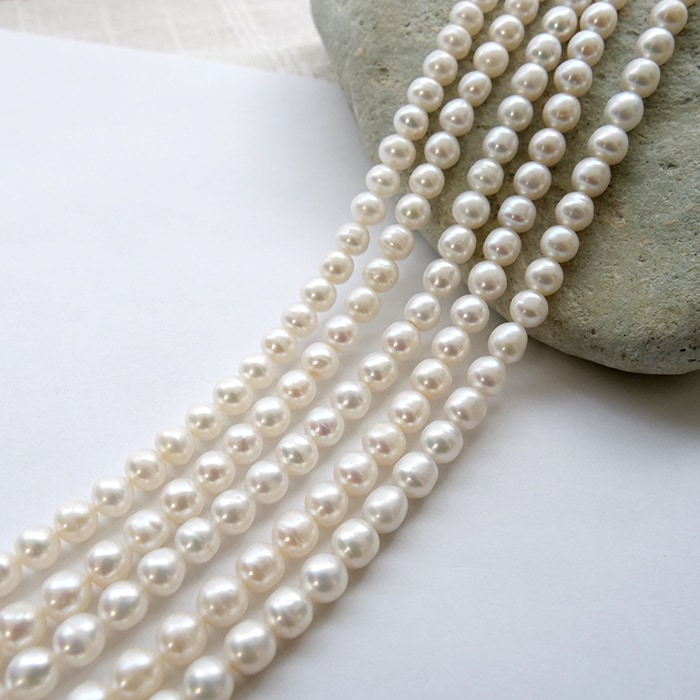 【227. ポテト型 淡水パール 連】約 6-6.5mm 1本(約40cm)セミラウンド ビーズ 国内発送 淡水真珠