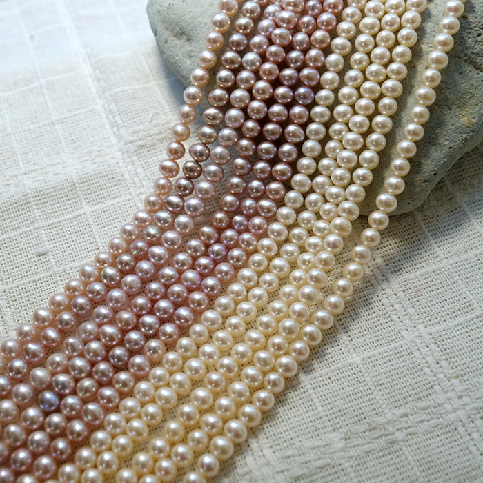 【225. セミラウンド 淡水パール 連】約3.0~4.5mm 1本(約40cm)ポテト ビーズ 国内発送 淡水真珠