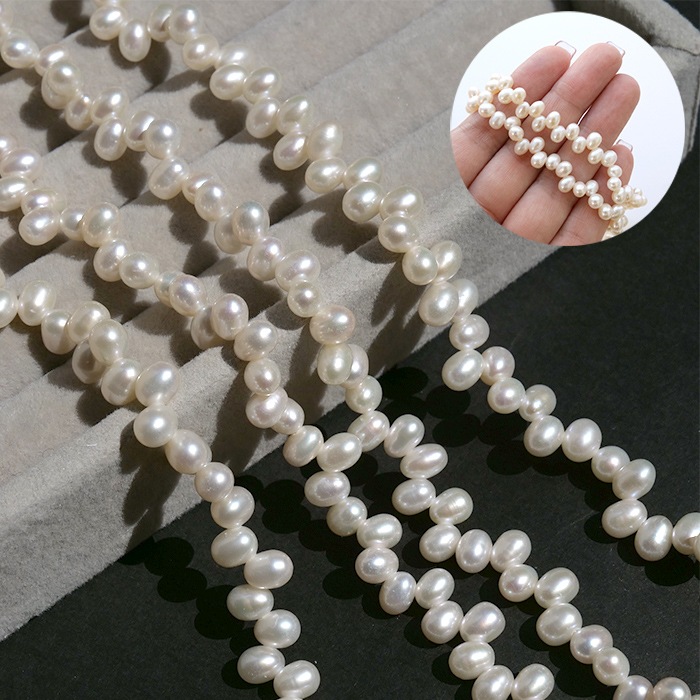 【235. ボタン 淡水パール ビーズ 連】 ミニサイズ 約3.5*3mm/粒 約40cm ホワイト 淡水真珠