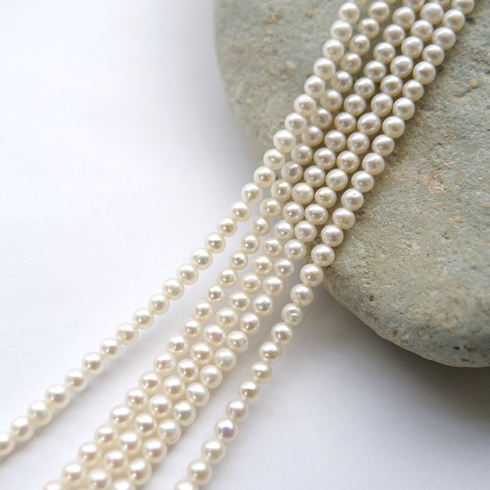 【251. セミラウンド【3A】 淡水パール ビーズ 連】ミニサイズ 約3mm粒 ホワイト 真珠 ニアラウンド